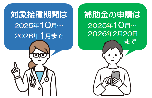 ※一部の医療機関で、2歳~19歳を対象に、鼻に噴霧する点鼻薬タイプのインフルエンザワクチン(経鼻弱毒生インフルエンザワクチン)「フルミスト点鼻薬」の接種が可能となっています。「フルミスト点鼻薬」についても、補助対象となります。