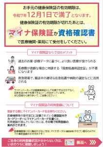 マイナ保険証をお持ちでない方は、お早めに切替をお願いします