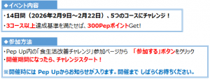 【Pep Upイベント】『食生活改善チャレンジ』エントリー受付中!